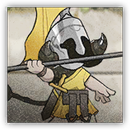 米诺斯公民扮演的勇士。这位公民已经能很熟练地扮演勇士的角色了,他的长矛可以精准扎中行人的屁股。