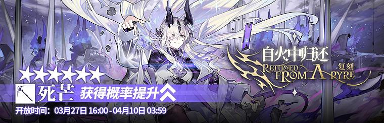 活动说明:活动期间【自火中归还】限时寻访开启,该寻访中以下干员获得概率提升
