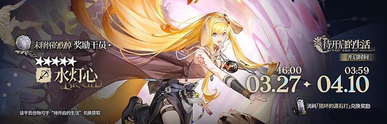 主要奖励:活动干员【★★★★★:水灯心】【“纳斯尔纱之夜”】家具(部分)、模组养成材料、「损坏的源石灯」等