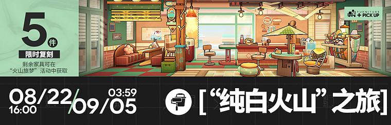 活动说明:活动期间将限时复刻【“求索者之梦”科考小屋】系列与【“纯白火山”之旅】系列主题家具