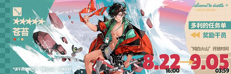 主要奖励:活动干员【★★★★★:苍苔】、【“纯白火山”之旅】家具(部分)、「毛绒绒生物的毛」、模组养成材料等