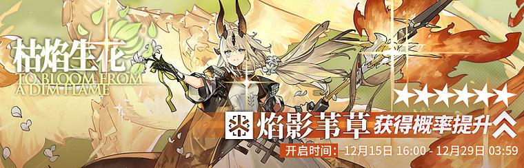 活动说明:活动期间【枯焰生花】限时寻访开启,该寻访中以下干员获得概率提升