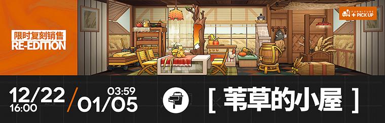 活动说明:活动期间将限时复刻【苇草的小屋】主题家具