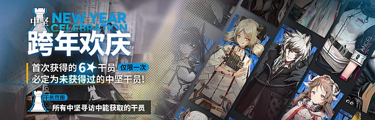 活动说明:活动期间【跨年欢庆·中坚】限时寻访开启,该寻访中首次招募到的六星干员必定为【中坚寻访】中未获得过的六星干员之一: