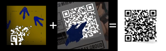 将两个碎片提取后拼接后,将左下角被污染的定位点清理出来,得到较为完整的二维码: