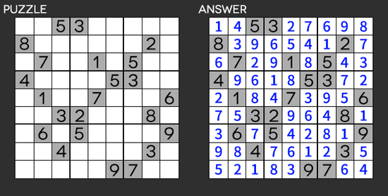 再根据第二部分(2)“报纸上做点数字谜题”,可以确定该9×9数字矩阵实际为数独(Sudoku,数独 / すうどく)游戏。